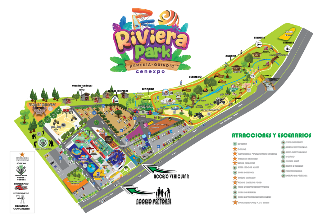 Riviera Park Cenexpo es un parque donde el visitante puede disfrutar de la más completa y variada diversión con: Atracciones Mecánicas, Juegos de Destrezas, alquiler de espacios, eventos, ferias, granja malú y Escenarios Naturales.